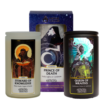 Choose three celestial scents from our Patrons & Deities collection to save big! A collection of celestial scents with a pantheon of personalities. Each personification of a higher power is designed to inspire your gameplay, coincide with your characters, and set the ambiance for your home.
