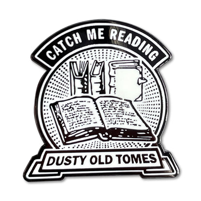 This is a ~2.5cm hard enamel pin in white/black, featuring a deluxe locking clasp. Comes packaged on a cute little card, which is sort of like a book with only one page.