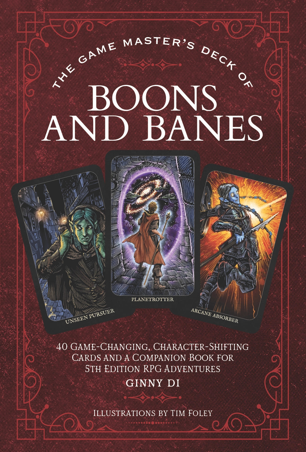 Conceived by tabletop RPG expert Ginny Di and featuring 20 boon and 20 bane cards, all stunningly illustrated by Tim Foley, this deck will help you advance player goals or hurl them (and your story) in an entirely different direction! Upon drawing a bane card, for example, a character might suffer a curse that threatens to strangle them the more active they are. However, pulling a boon could very well bestow a blessing from a higher power, such as a pair of guardian wolves that travel with the character wherever they go.
